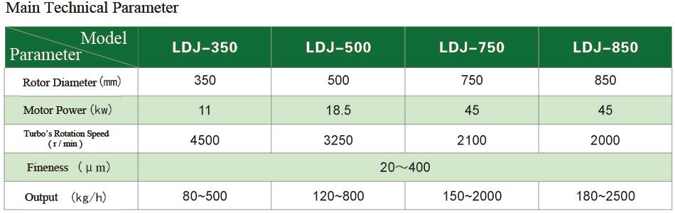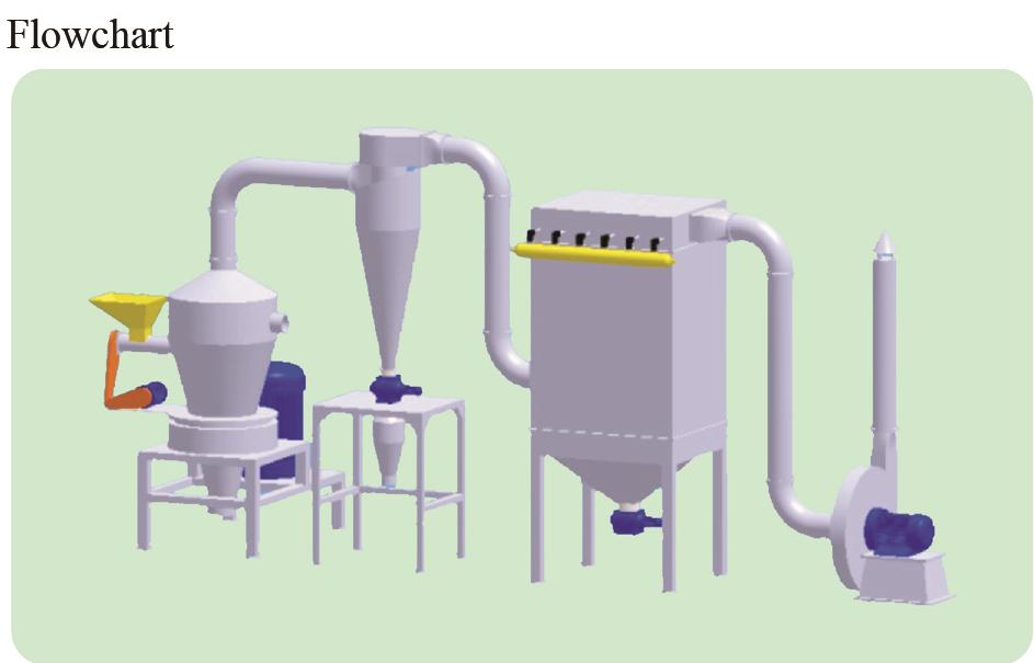 This machine is a vertical non-sieve winnowing machine, all wearing parts are made from special wear-resistant materials or hard alloy. Good wear-resistance and small particle size. Equipped with the water cooling device, which ensure the color, nature and quality of the heat-sensitive material. Good heat dissipation avoid the rise of temperature and protect the material quality. air separation device can automatically adjust the particle size.