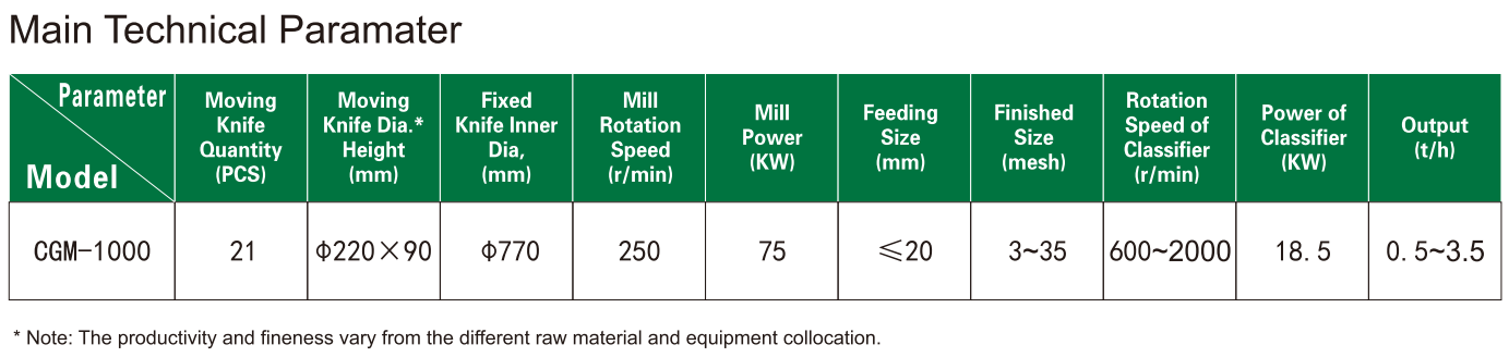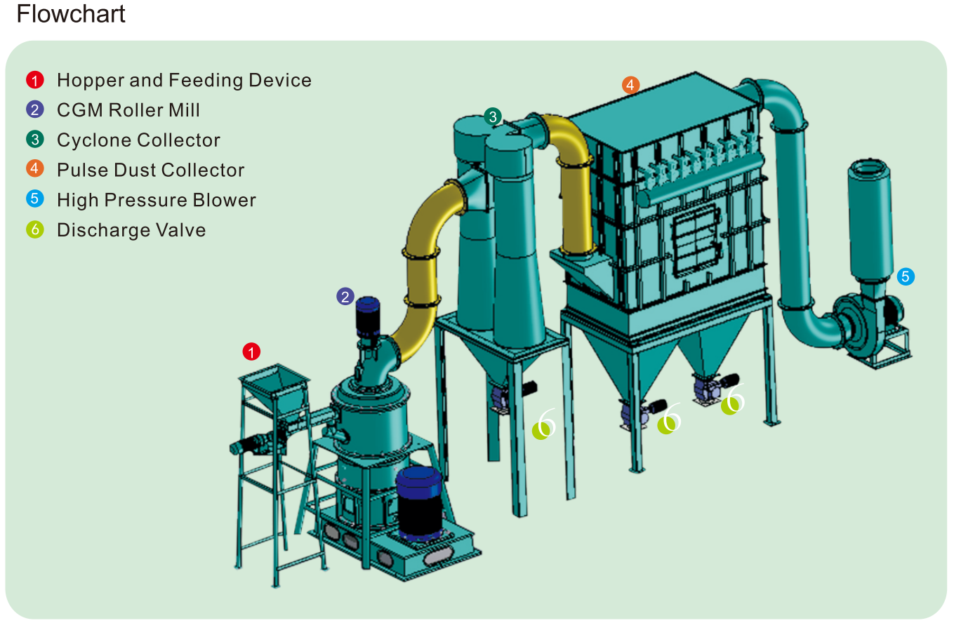 This machine is suitable for grinding normal materials, such as Kaolin, Limestone, Calcite, Talcum, Graphite etc. uninflammable and unexplosive material, whose humidit is less than 8%, morse hardness is lower than Grade 6. It is the ideal processing machine for non-me